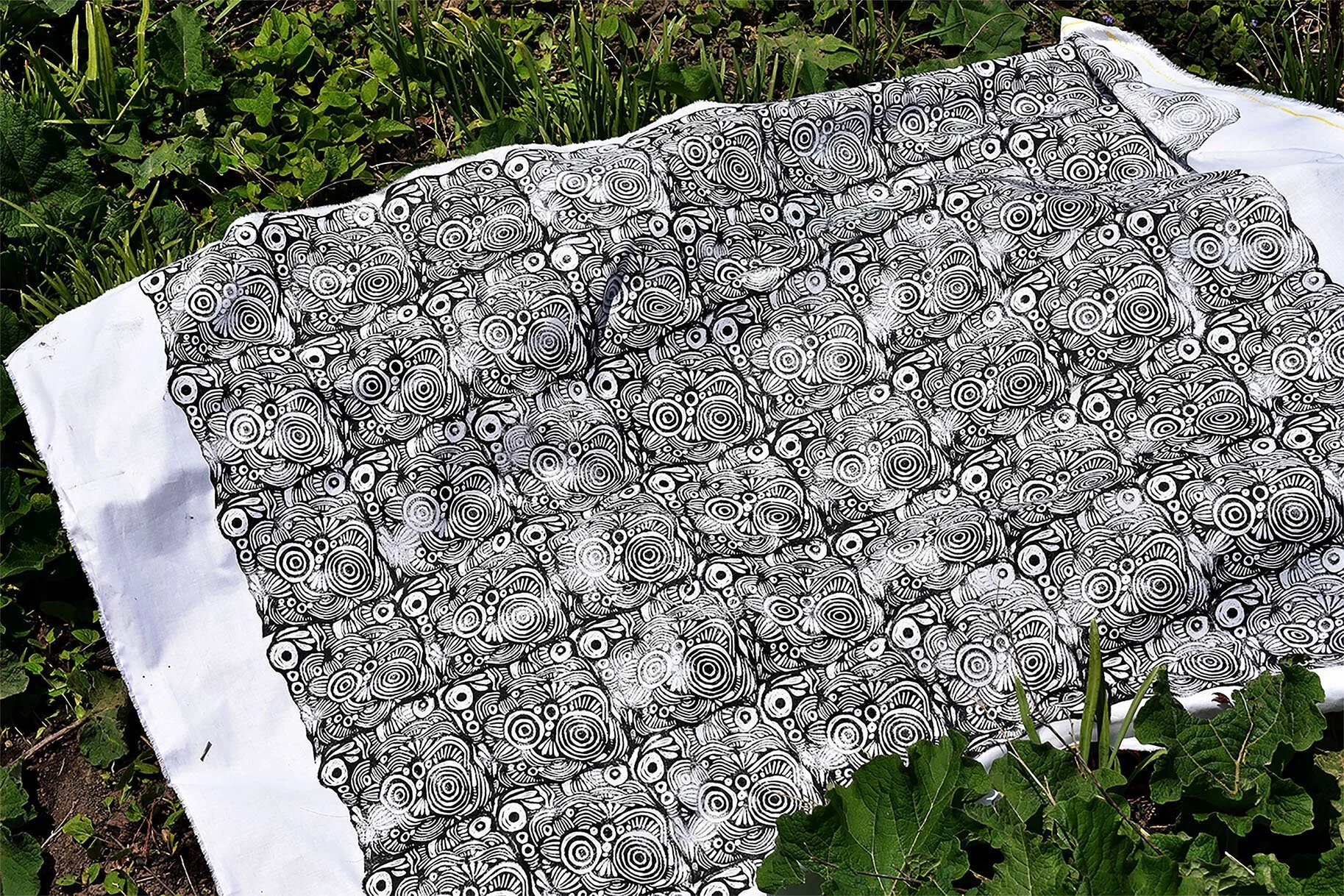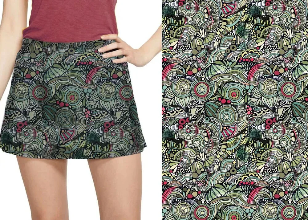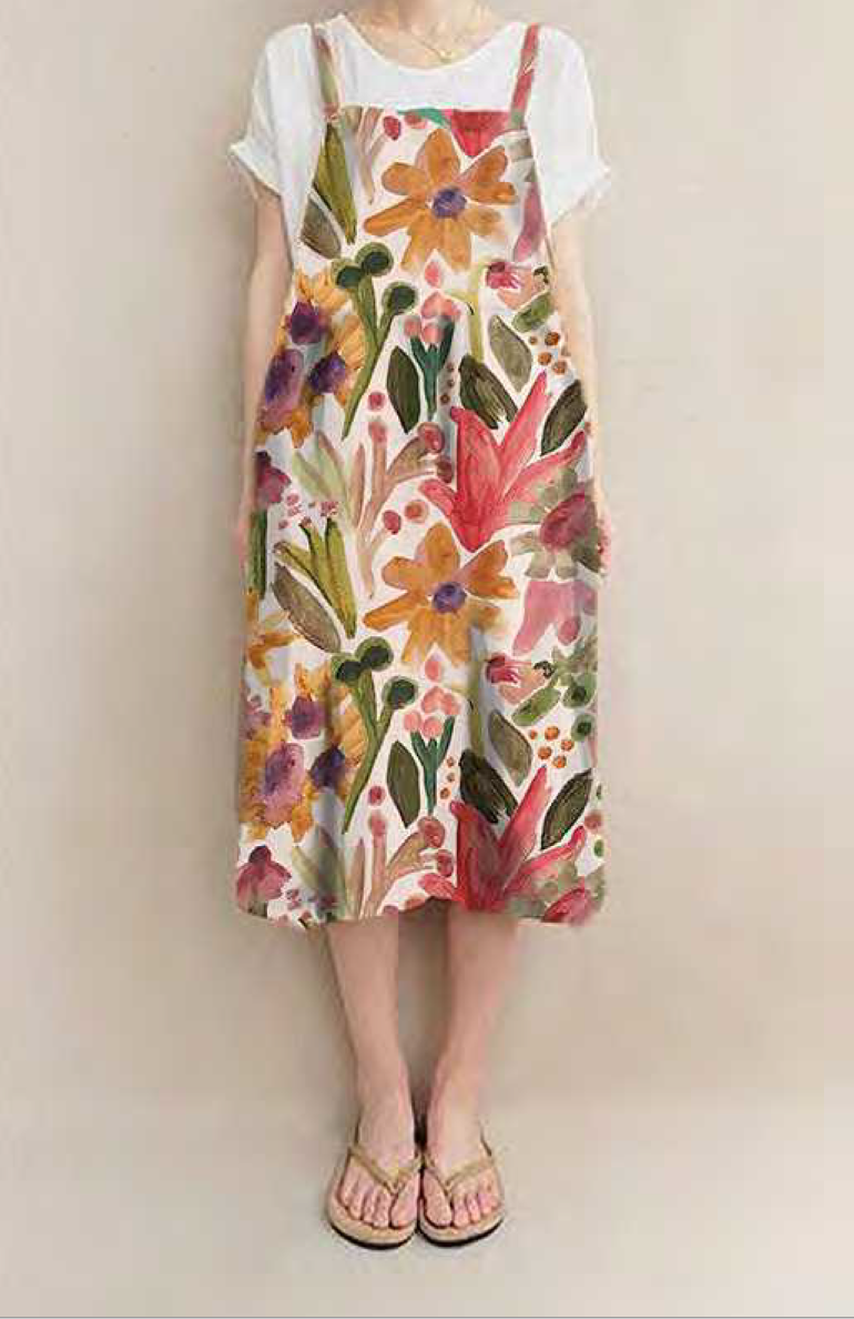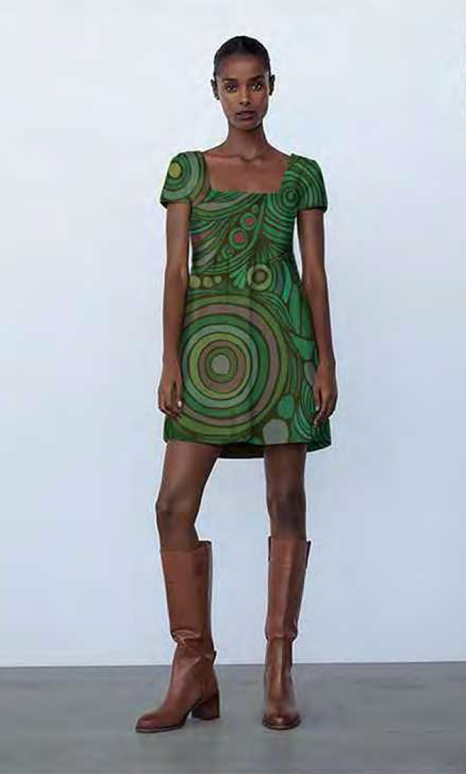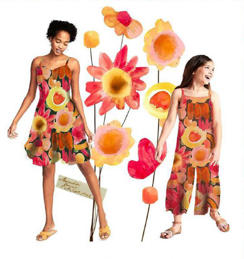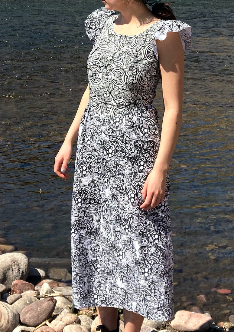 Dress design: handprinted pattern constructed into dress